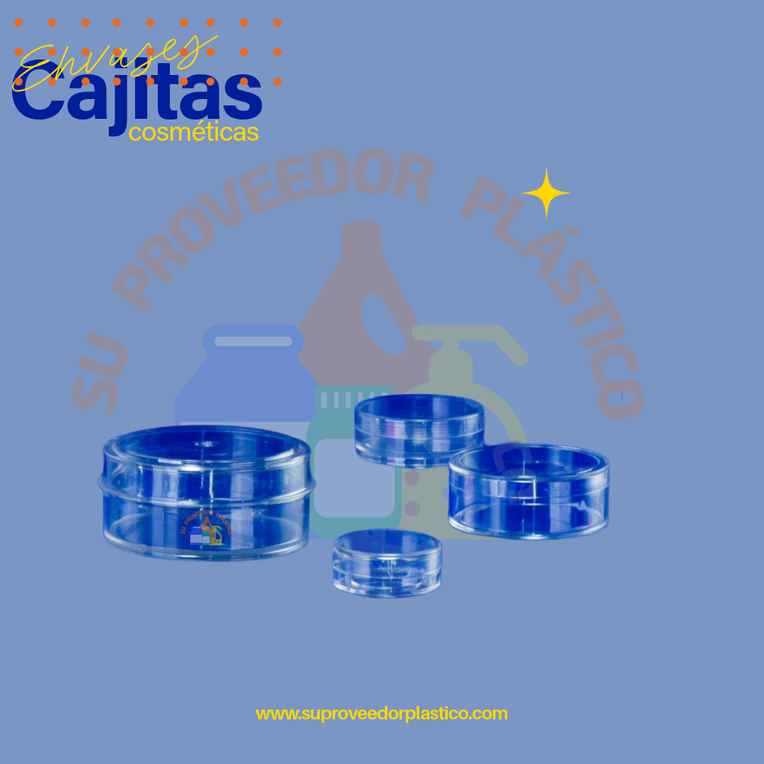 Cajitas de plástico transparente y cristalino de boca ancha.